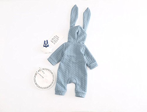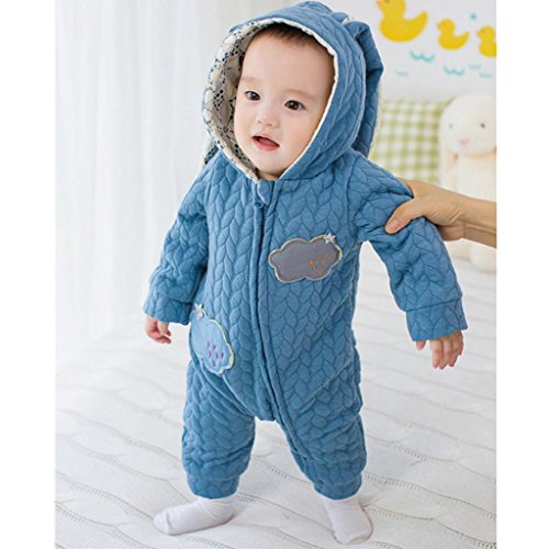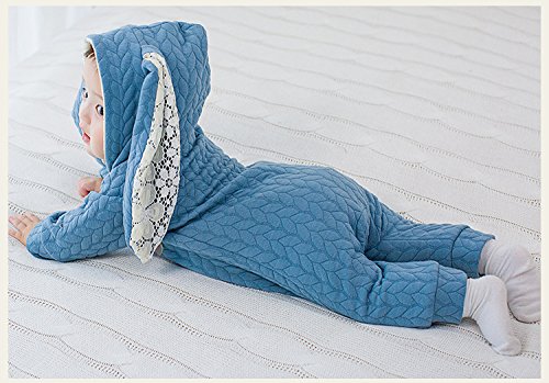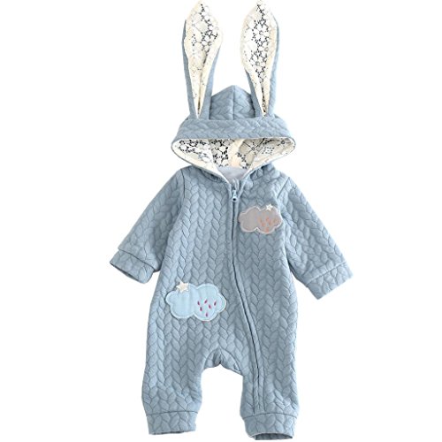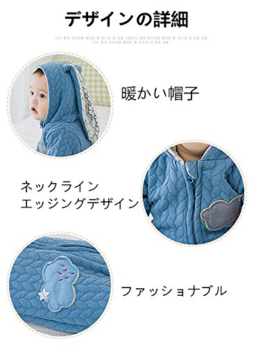 Lutents ベビー服 赤ちゃん アニマル カバーオール ロンパース フード付き ジッパー カートゥーン ロンパース 着ぐるみ 綿入り 春秋冬防寒 (80cm, ブルー)
