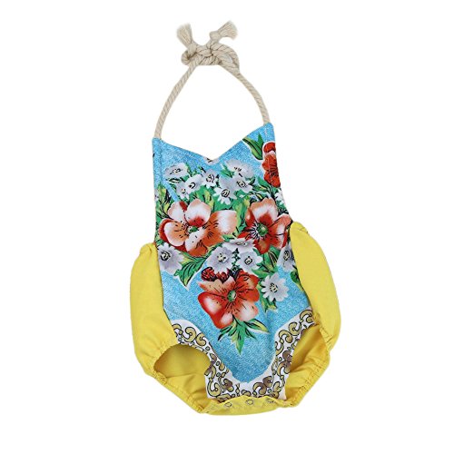 Lutents ベビー服 ホルターネックロンパース カバーオール プリント花柄 女の子 カジュアル 快適 着心地良い 歩行服 パジャマ 新生児 出産祝いプレゼント 可愛い オシャレ