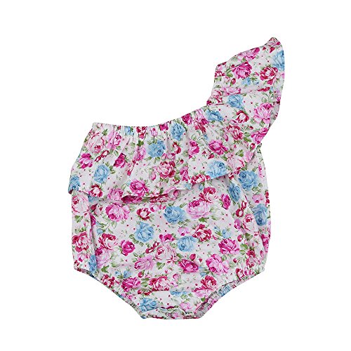 Lutents ベビー服 ロンパース カバーオール オフショルダー バラ柄 お花柄 女の子 カジュアル 快適 着心地良い 歩行服 パジャマ 新生児 出産祝いプレゼント 可愛い オシャレ