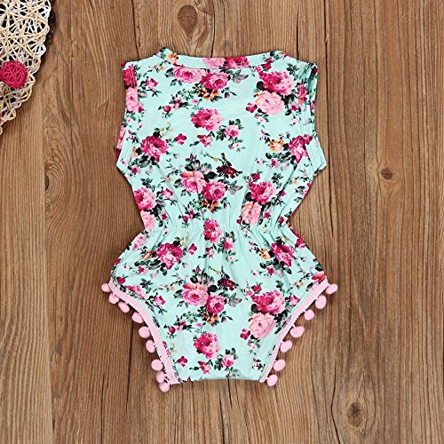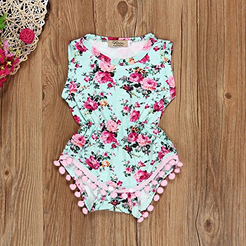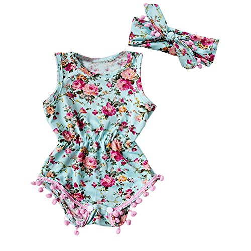 Lutents ベビー服 ロンパース カバーオール プリント花柄 フリンジ飾り ヘアリボン付き 女の子 カジュアル 快適 着心地良い 歩行服 パジャマ 新生児 出産祝いプレゼント 可愛い オシャレ