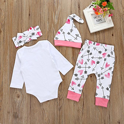 Lutents ベビー服 ロンパース カバーオール 四点セット 長袖 帽子付き ヘアバンド付き ロンパンツ 矢柄 女の子 カジュアル 快適 着心地良い 歩行服 パジャマ 新生児 出産祝いプレゼント 可愛い