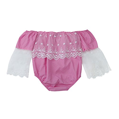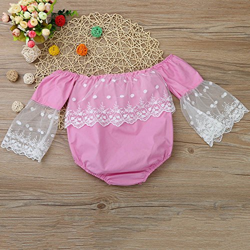 Lutents ベビー服 ロンパース カバーオール オフショルダー レース模様 長袖 女の子 カジュアル 快適 着心地良い 歩行服 パジャマ 新生児 出産祝いプレゼント 可愛い