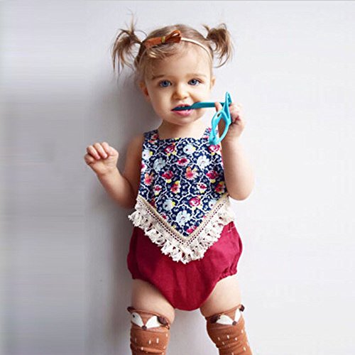Lutents ベビー服 ロンパース カバーオール サロペット 花柄 フリンジ模様 可愛い 女の子 カジュアル 快適 着心地良い 歩行服 パジャマ 新生児 出産祝いプレゼント