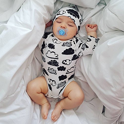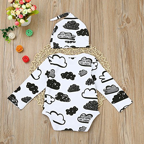 Lutents ベビー服 ロンパス カバーオール 二点セット 長袖 雲柄 帽子付き 可愛い 女の子 男の子 カジュアル 快適 着心地良い 歩行服 パジャマ 新生児 出産祝いプレゼント