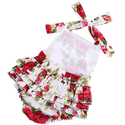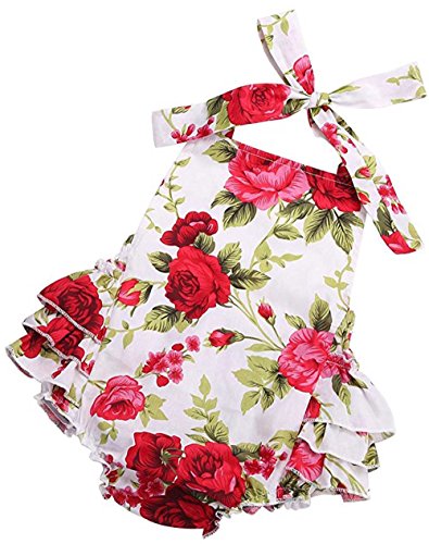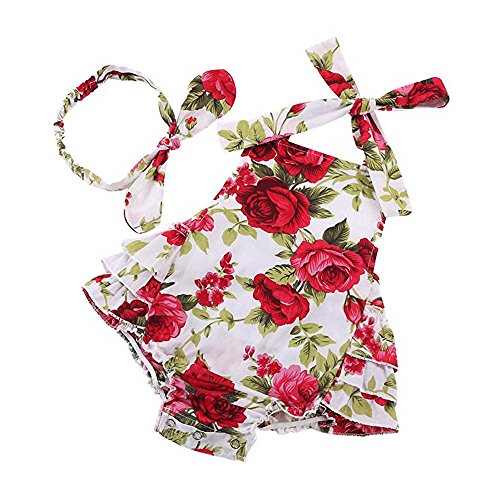 Lutents ベビー服 ロンパス カバーオール ホルターネック 花柄 プリント花柄 ヘアバンド付き 可愛い 女の子 カジュアル 快適 着心地良い 歩行服 パジャマ 新生児 出産祝いプレゼント