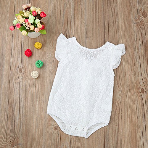 Lutents ベビー服 ロンパース カバーオール フリル袖 純白 レース 可愛い 女の子 カジュアル 快適 着心地良い 歩行服 パジャマ 新生児 出産祝いプレゼント