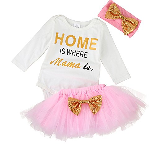 Lutents ベビー服 ロンパース カバーオール 三点セット 長袖 スカート付き ヘアバンド付き 蝶結び 可愛い 女の子 カジュアル 快適 着心地良い 歩行服 パジャマ 新生児 出産祝いプレゼント