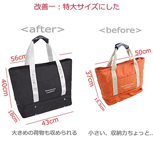 - 「特大サイズキャリー バッグ 収納力たっぷり」改良したサイズ、たくさん荷物が入る。旅行に、通勤通学に、ピクニックに、ジム通いに、海水浴に、マザーズバッグに、アウトドアに、その他色々大活躍!本体サイズ:56*40*18 cm。重さ:0.56KG 。表面は丈夫な防水高密度ナイロン生地で、生活撥水保護も できます。