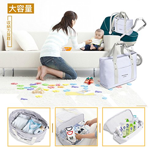 - 【多機能なトートバッグ】スーツケースとの相性も抜群。スーツケースの持ち手に通せるトートバッグ、外出には便利設計。また、キャリーバッグとしてもバッチリ。持ち手の長さは改良されました。肩掛けしたまま、圧迫感なく、中身(赤ちゃん用品など)を取り出すことはできます。