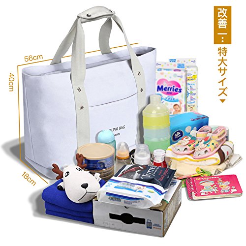 - 【大容量なマザーズバッグ】改良した特大サイズで、たくさん荷物が入る。56cm ×18cm ×40cm 子供の着替え、哺乳瓶、調乳用のお湯を入れた水筒、おむつポーチ、ママお化粧ポーチなどたっぷり収納可能!
