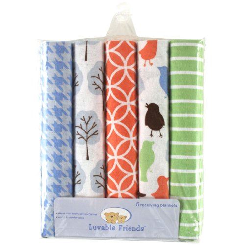 Luvable Friends ラバブルフレンズ Flannel Receiving Blankets 5pk フランネル おくるみ ブランケット 5枚セット Blue Birds ブルーバード