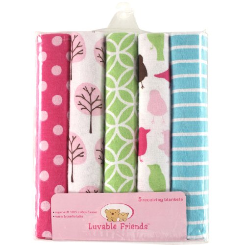 Luvable Friends ラバブルフレンズ Flannel Receiving Blankets 5pk フランネル おくるみ ブランケット 5枚セット Pink Birds ピンクバード