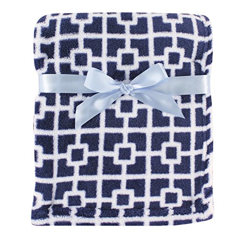 Luvable Friends Print Coral Fleece Blanket, Blue Trellis by Luvable Friends