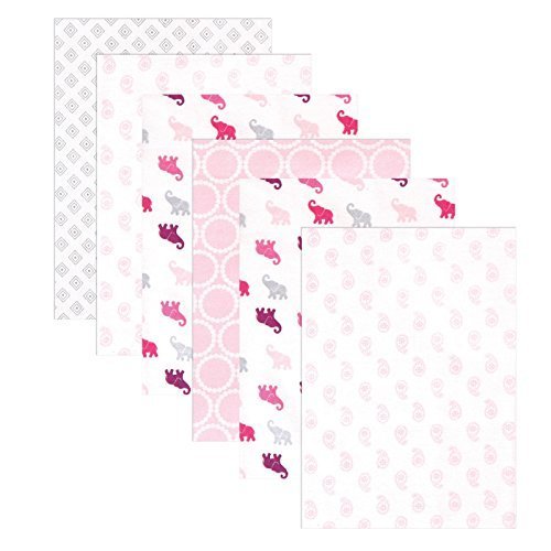 Luvable Friends Flannel 6 Piece Receiving Blankets, Elephants