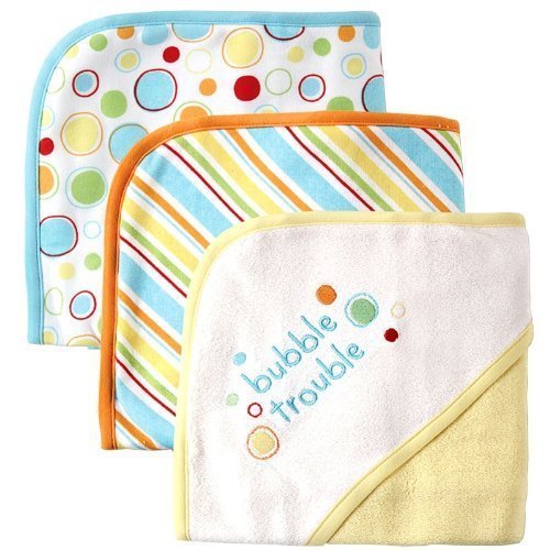 Luvable Friends 3 Pack Embroidered Sayings Hooded Towels, Yellow
