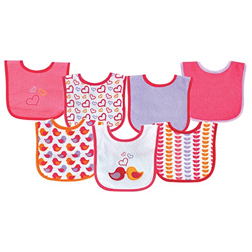 - Luvable Friends 7 Piece Drooler Bibs with Waterproof Backing, Pink Birds