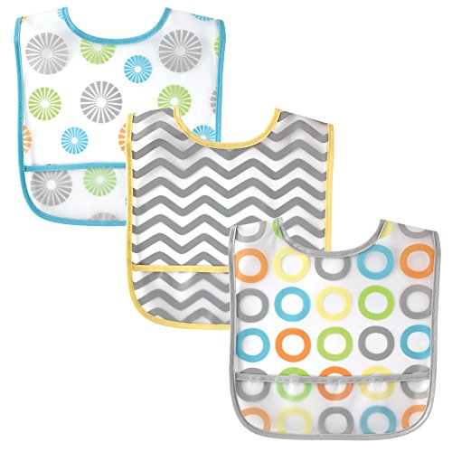 - Luvable Friends 3 Piece Waterproof Bibs with Crumb Catcher, Yellow Pinwheels