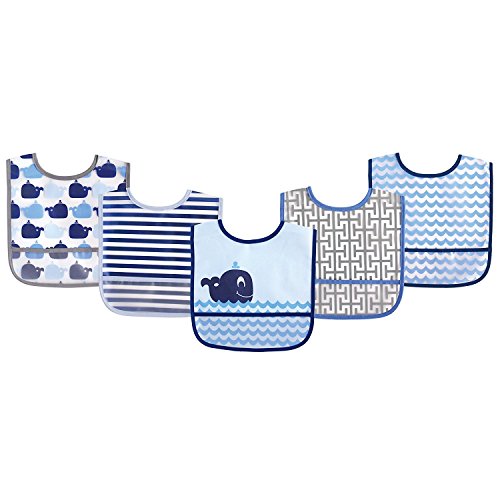 - Luvable Friends 5 Piece Waterproof Bibs with Crumb Catcher, Blue Whale