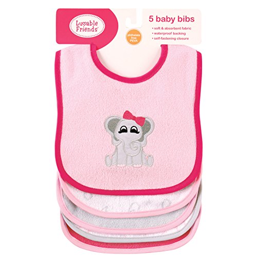 - Luvable Friends 5 Piece Drooler Bib with Waterproof Backing, Elephant