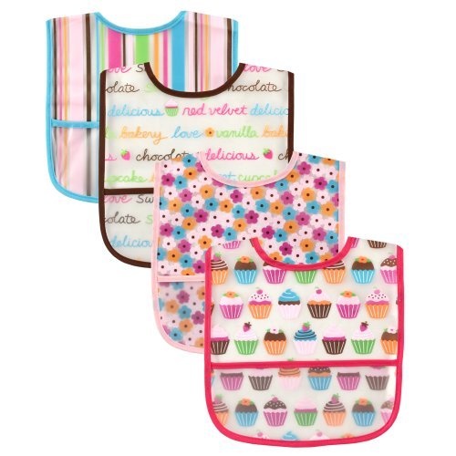 Luvable Friends Water Resistant Bibs with Crumb Catcher Pocket, Pink, 4-Count by Luvable Friends [並行輸入品]
