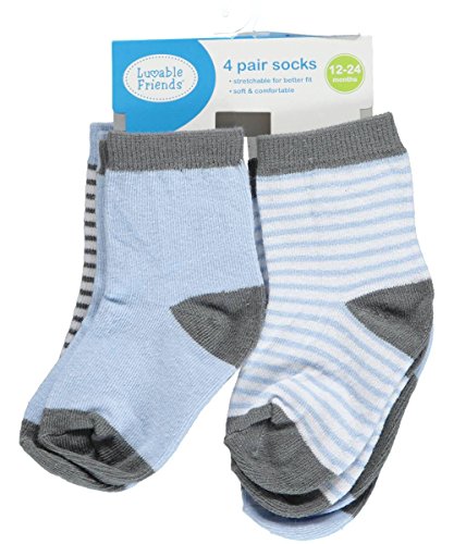 Luvable Friends Baby Boys ' "ストライプ+ソリッド" 4 -パッククルーソックス カラー: ブルー