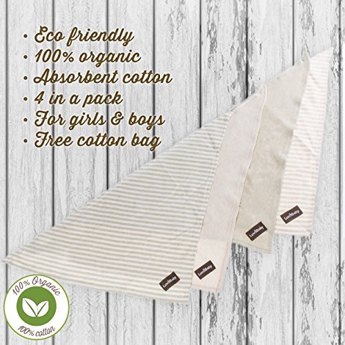 Baby Bandana Bibs – 4 Pack Drool Bibs with Carryバッグ – 100 % Organic Undyedコットン
