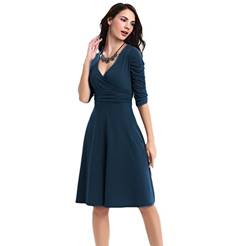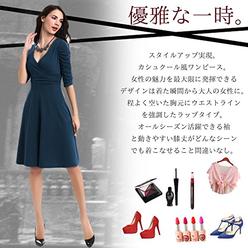 (ラグロージー)LuxRosy* レディース カシュクール ワンピース 五分袖 膝丈 デート ピーコックブルー S
