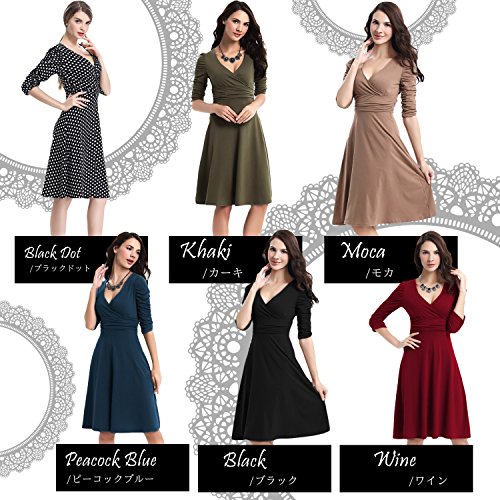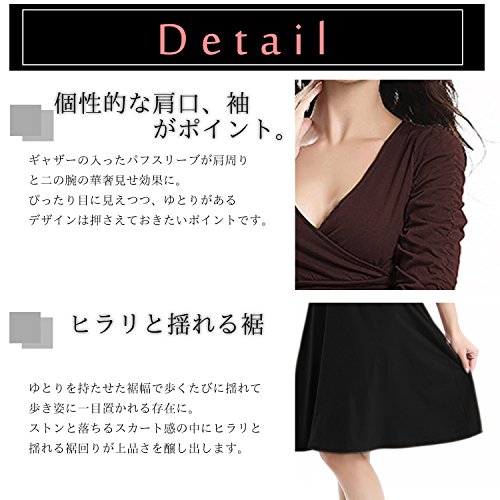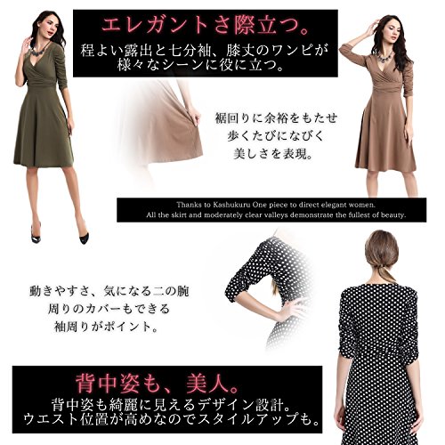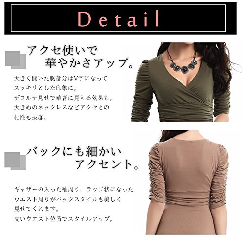 - スタイルアップも叶うカシュクール風ワンピース。ギャザーの効いた七分袖、ほどよく空いたデコルテ部分、膝丈でエレガントさも醸し出すワンピースはカラバリ揃いで集めたくなること間違いなし!