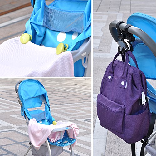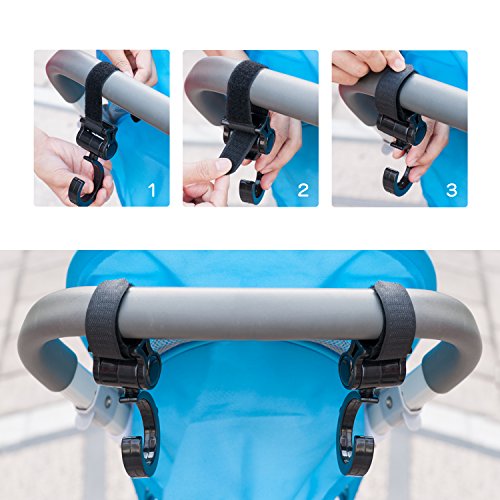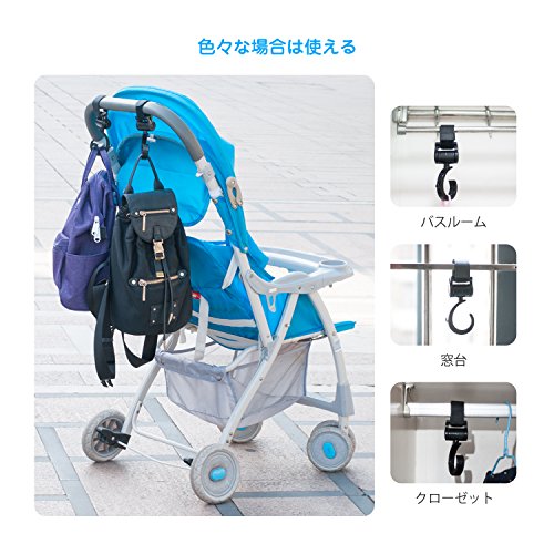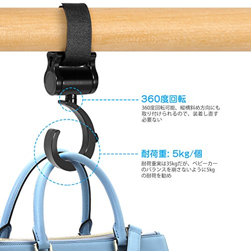 - <360度回転・優れた荷重能力> フックが360度回転可能で、縦横斜め方向にも取り付けられますので、どんな角度からも簡単にバッグをかけることができます。軽量なのに耐用性が抜群です。フック2個使用すると、5kgまでの荷物が掛けられます。(ベピーカーではないと、静荷重は15kgまで)これならママもスタイリッシュにお出かけができます。