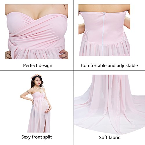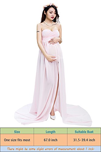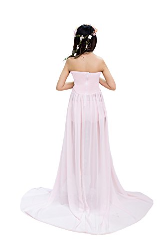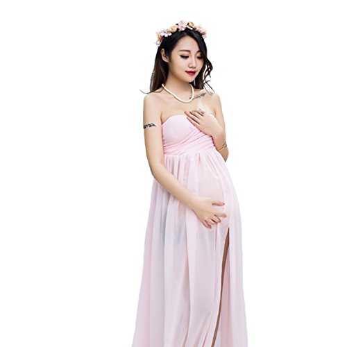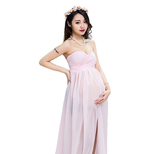 セクシーなマタニティドレス薄手シフォンガウンSplit Front Maxi Photographyドレスのビーチ カラー: ピンク