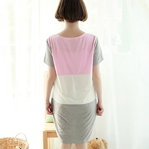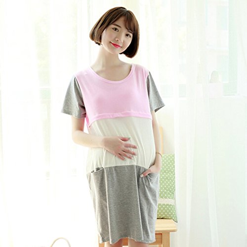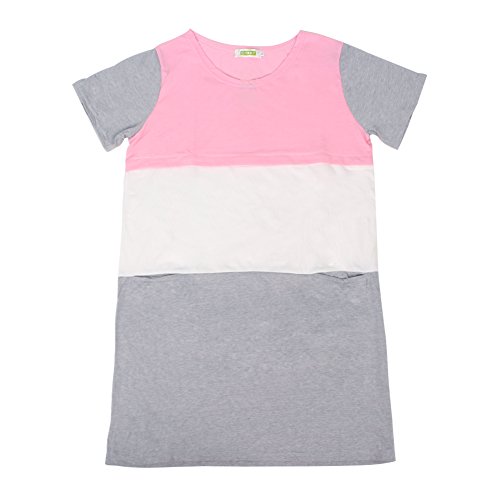 M&M Mymoon 妊婦母乳養育の夏綿花は産婦パッチワークワンピースストライプパッチワークシャツを看護します