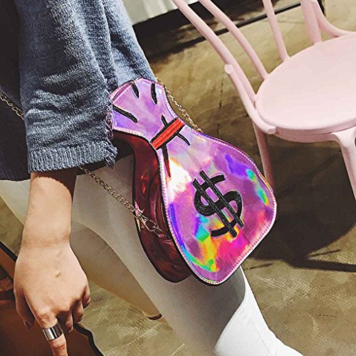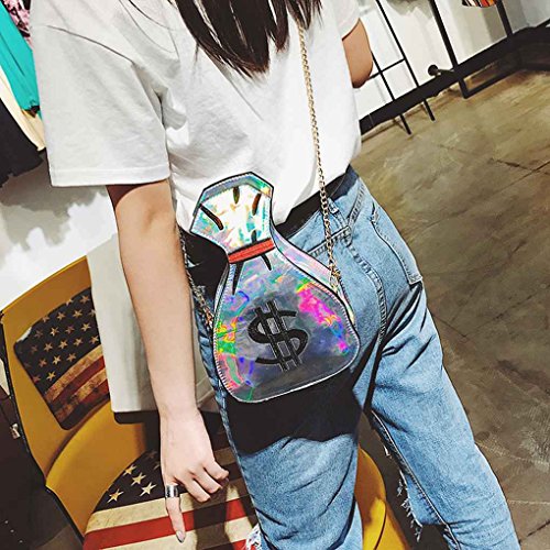 m-egalお金バッグ形レディースPUレザーレザーメッセンジャーバッグ面白いショルダーバッグハンドバッグ シルバー