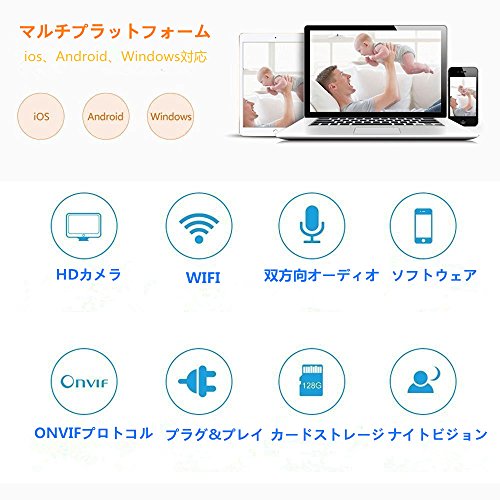 - 5、ワイヤレス機能。ワイヤレスWIFI接続可能。ISO、Android、Windowsなどの設備に対応でき、多ユーザー同時に使用可能監視カメラです。SDカードは最大64GBまでに対応出来ます。