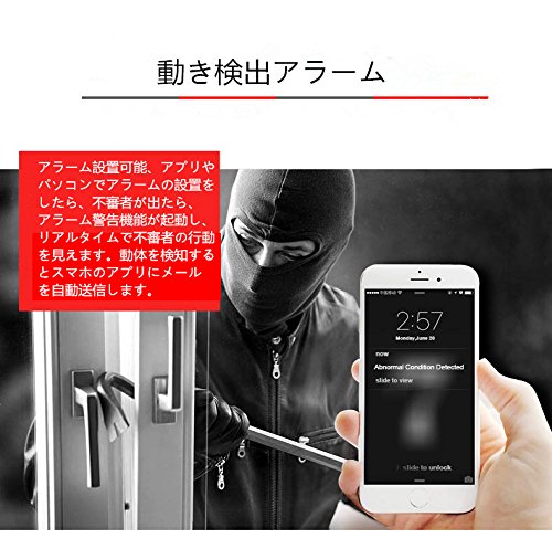 アラーム設置可能、アプリやパソコンでアラームの設置をしたら、不審者が出たら、アラーム警告機能が起動し、リアルタイムで不審者の行動を見えます。