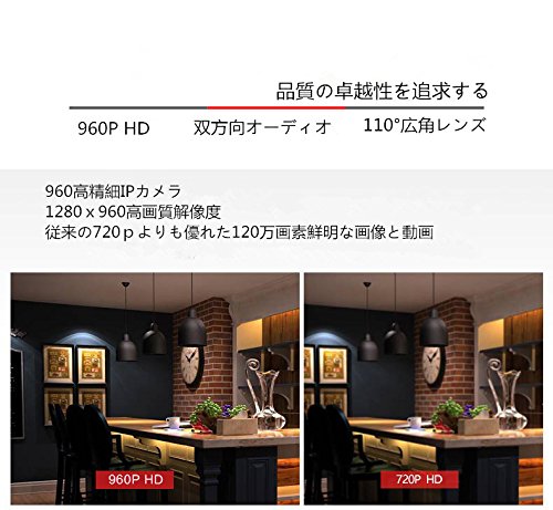 M.WAY WIFIワイヤレス無線ネットワーク防犯カメラ ベビーモニター 960P 130万画素 双方向音声 首振り動体検知 暗視撮影 ペット、子供、老人等留守番 スマホ、ipad、パソコン対応 日本語説明書
