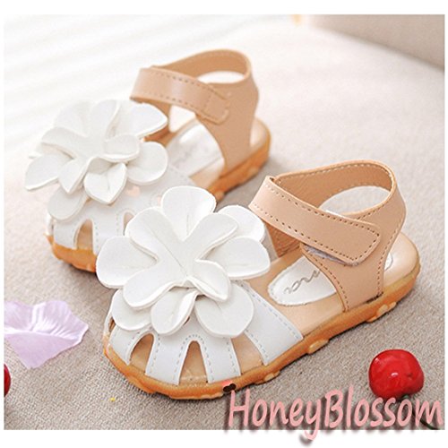 M.Z.L ベビー おしゃれ 靴 フラワー モチーフ サンダル 夏 赤ちゃん キッズ 履き心地 柔らか マジックテープ ストラップ 滑り止め 付き 可愛い 花 女の子 シューズ (15.5cm, ホワイト)