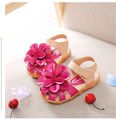 M.Z.L ベビー おしゃれ 靴 フラワー モチーフ サンダル 夏 赤ちゃん キッズ 履き心地 柔らか マジックテープ ストラップ 滑り止め 付き 可愛い 花 女の子 シューズ (17.4cm, バラ色)