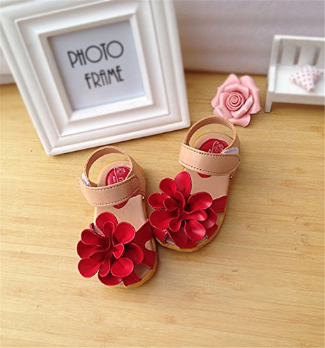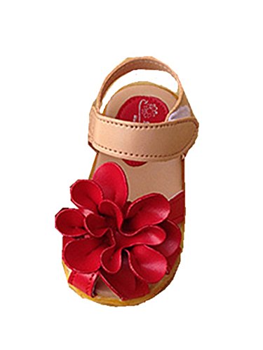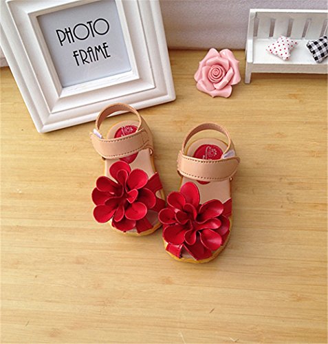 M.Z.L ベビー おしゃれ 靴 フラワー モチーフ サンダル 夏 赤ちゃん キッズ 履き心地 柔らか マジックテープ ストラップ 滑り止め 付き 可愛い 花 女の子 シューズ (13.5cm, レッド)