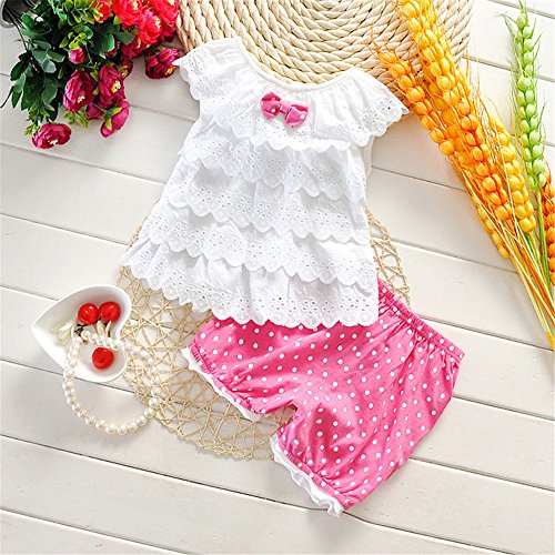 M.Z.L リボン 子供服 キッズ服 韓国子供服 キッズ パンツセット ブラウス キャミソール ガールズ 可愛い 夏服 子ども服 女の子 (6#, バラ色)