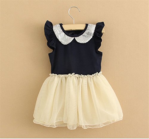 M.Z.L 子供 キッズ ドレス フラワーガール パーテイードレス 入園式 卒園式 卒業式 発表会 結婚式 プリンセスセレクション] 韓国子供服・フォーマルドレス (100cm, ネイビー)