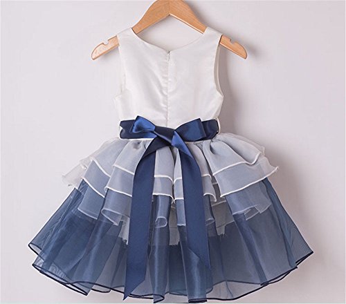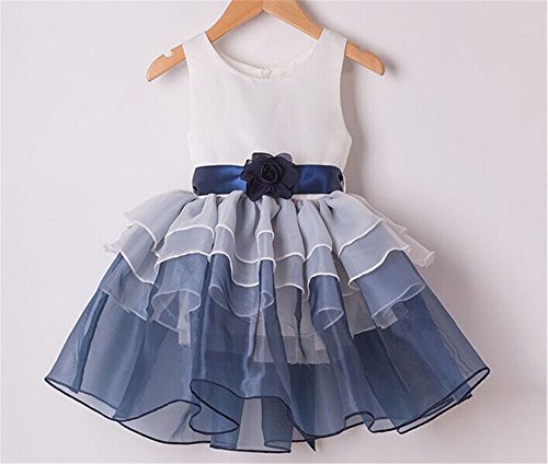 M.Z.L こどもドレス 女の子ドレス 子どもドレス フラワードレス 結婚式 発表会 花嫁介添人 フラワードレス 花柄 (130cm, ブルー)