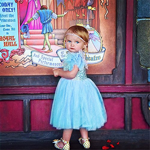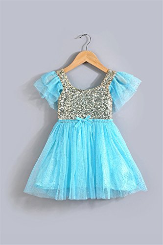 M.Z.L ガールズ 子供ドレス キッズドレス ワンピース 女の子 女児 ガールズ フォーマル 発表会 結婚式 入園式 演奏会 (100CM, ブルー)