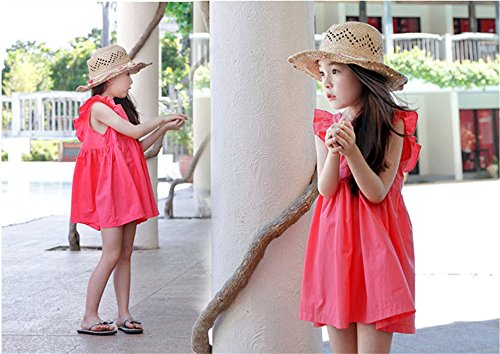 M.Z.L ワンピース 子供ドレス キッズワンピース 切り替え風 女の子入学式 プリンセスドレス フラウンス イエロー バラ色 (130CM, バラ色)