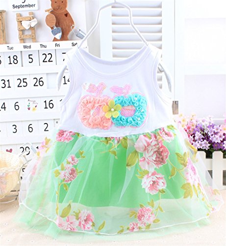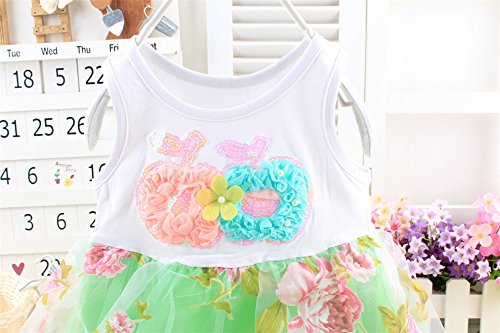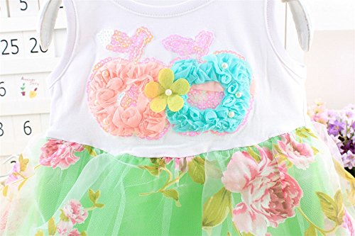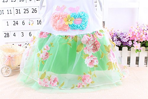 M.Z.L ベビー(女の子)用フラワー チュール チュチュ ドレス プリンセス リボン ベスト ワンピース 赤ちゃんのフローラルワンピースドレス 1-3歳スカート ベビー 子供 ノースリーブ ドレス フォーマル ワンピース (110CM, グリーン)
