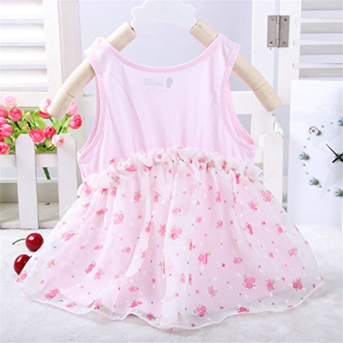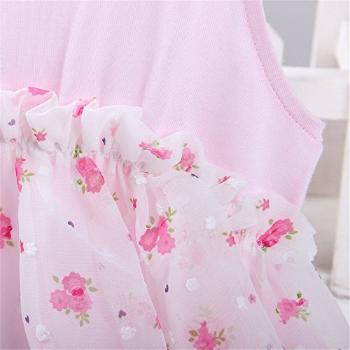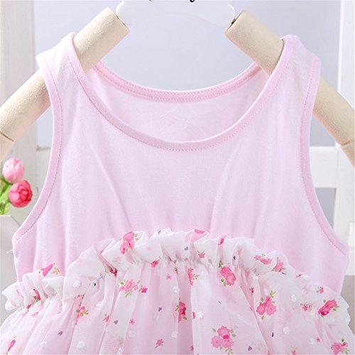 M.Z.L ベビー(女の子)用 ドレス プリンセス リボン ベスト ワンピース 赤ちゃんのフローラルワンピースドレス 1-3歳スカート ベビー 子供 ノースリーブ ドレス フォーマル ワンピース 入園式 (80cm, ピンク)