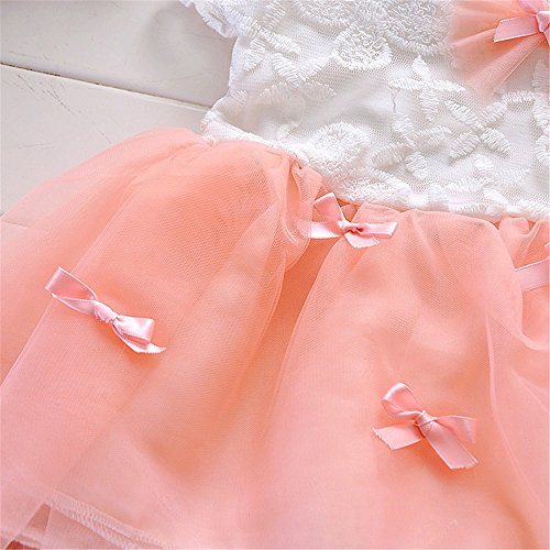M.Z.L のワンピース キッズ子供 女の子ワンピース 真夏気分に展開 超可愛 素敵なレースのワンピース キッズ子供 女の子ワンピース 真夏気分に展開 超可愛 素敵なレース エレガント子供ワンピース フワフワティアードスカート (90CM, ピンク)