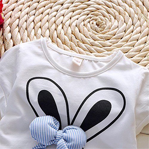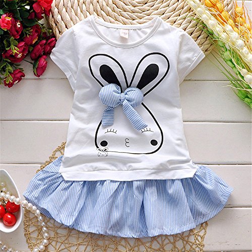 M.Z.L 春夏 可愛い ベビー 子供 フォーマル ワンピース ブラウス+スカート 女の子 子供用 キッズ ジュニア 子ども こども スカート付き 子供 ドレす 女の子ワンピース 可爱い兎顔 (95cm, ブルー)