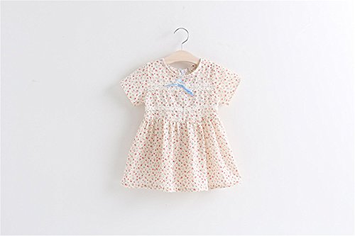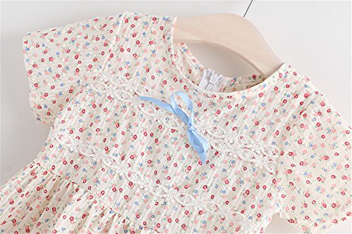 M.Z.L 子供 ドレス 2-7歳ガールズ ワンピース ひざ丈 キッズドレス フラワードレス リボン付き 結婚式 発表会 演奏会など 子供ドレス 女の子ドレス キッズドレス フォーマルドレス ワンピース 花柄 (100CM, クリーム色)