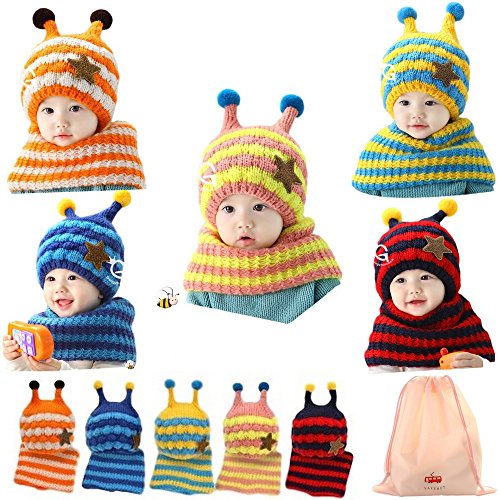 M0N0liTH ミツバチ ニット帽子 ネックウォーマー セット 子供 子ども 用 マフラー ケープ スヌード かわいい 防寒 男の子 女の子 選べる5色 (オレンジ)