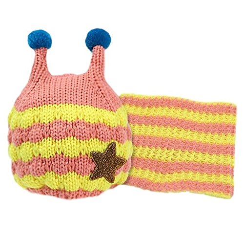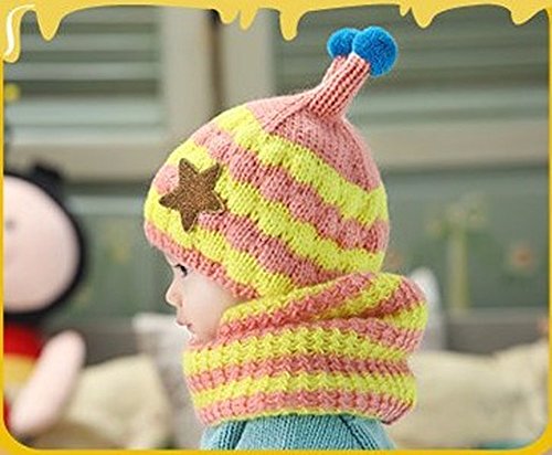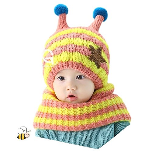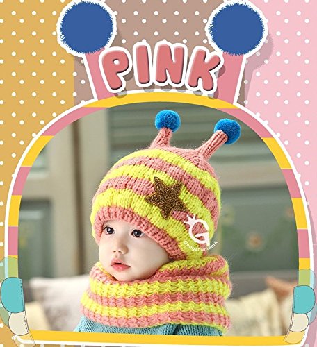 M0N0liTH ミツバチ ニット帽子 ネックウォーマー セット 子供 子ども 用 マフラー ケープ スヌード かわいい 防寒 男の子 女の子 選べる5色 (ピンク)